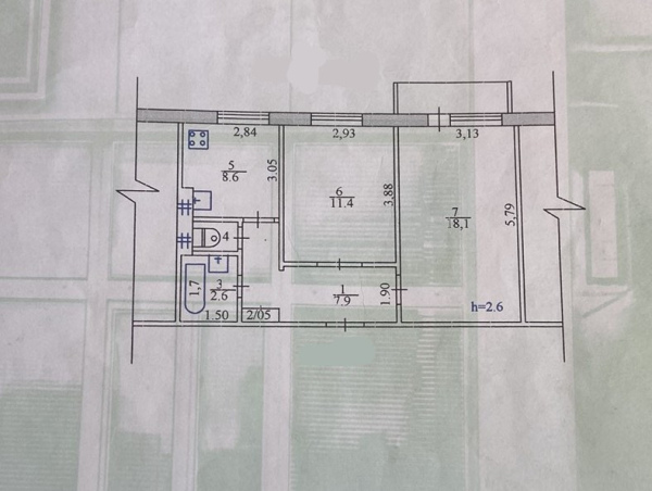 У продажу 2-о кімнатна квартира. Стан: незавершений ремонт. Середній поверх. Східна сторона. Загальна площа 51м²; площа кухні: 8.6м²; площа кімнат: 11.4м² та 18.1м² + 0.9м² балкон (за рахунок якого подовжено кімнату). Висота: 2.60м. Санвузол роздільний.